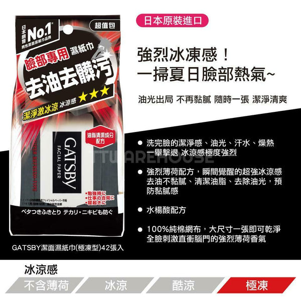 GATSBY Facial Wipes / Paper Super Refresh Type (42 pcs / Per Pack) Made in Japan